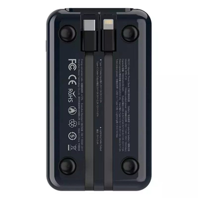 خروجی تایپ سی: 5V/3A 9V/2.22A,12V/1.67A خروجی یو اس بی: 5V/4.5A 5V/3A 9V/2A 12V/1.5A خروجی کابل تایپ سی: 5V/3A 9V/2.2A 12V/1.67A خروجی کابل لایتنینگ: 5V/2.4A