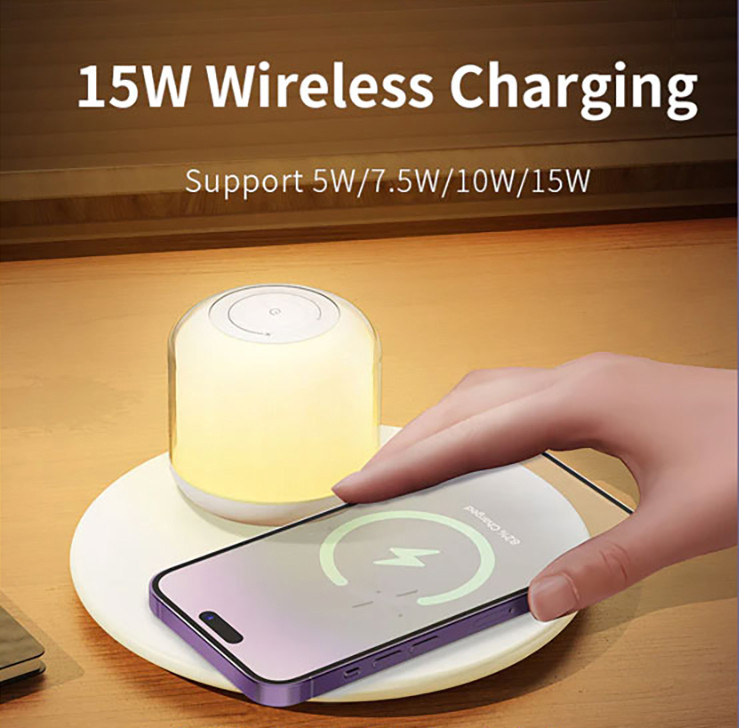 درگاه ورودیType-Cتوان ورودی5V/2A、 9V/2Aخروجی وایرلس15W/10W/7.5W/5Wقدرت چراغ خواب1.2Wظرف باتری چراغ300mAhدمای رنگ3000K